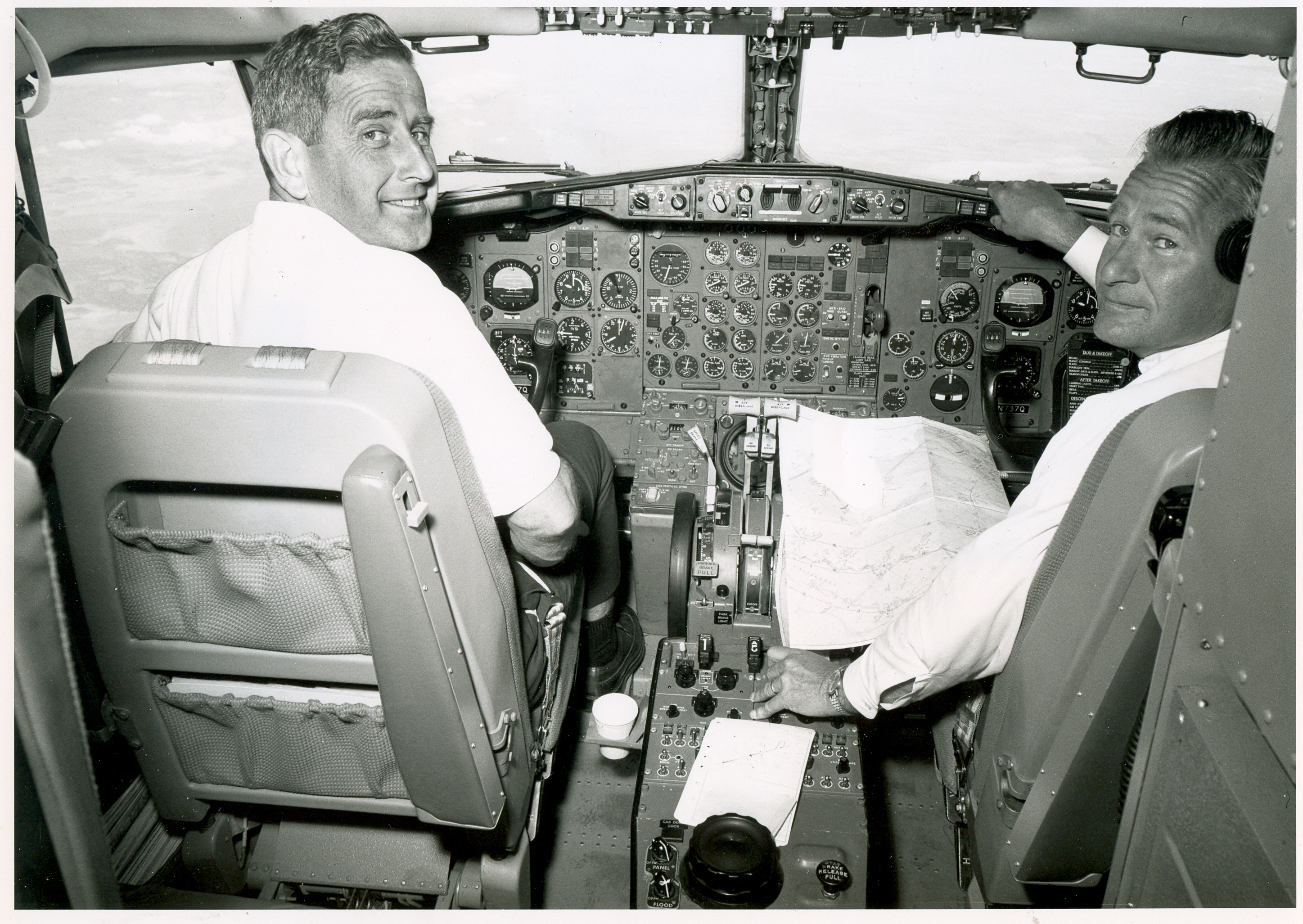Above, Ray McPherson and Jim Goodell over the Andes mountains in the 737.